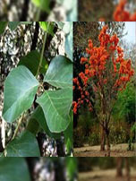 A deciduous tree growing up to 15 m. height and 1.5-2 m in girth, trunk is crooked. Bark light-brown or bluish-grey, yielding a ruby-red vitreous gum(Butea gum or Bengal keno) Wood-white or yellow-brown.