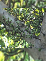 Fruits— borne in large clusters on short leaflet branches derived from the trunk and main branches, subglobose or pyriform, 2.5-5.5 cm diameter red when ripe.